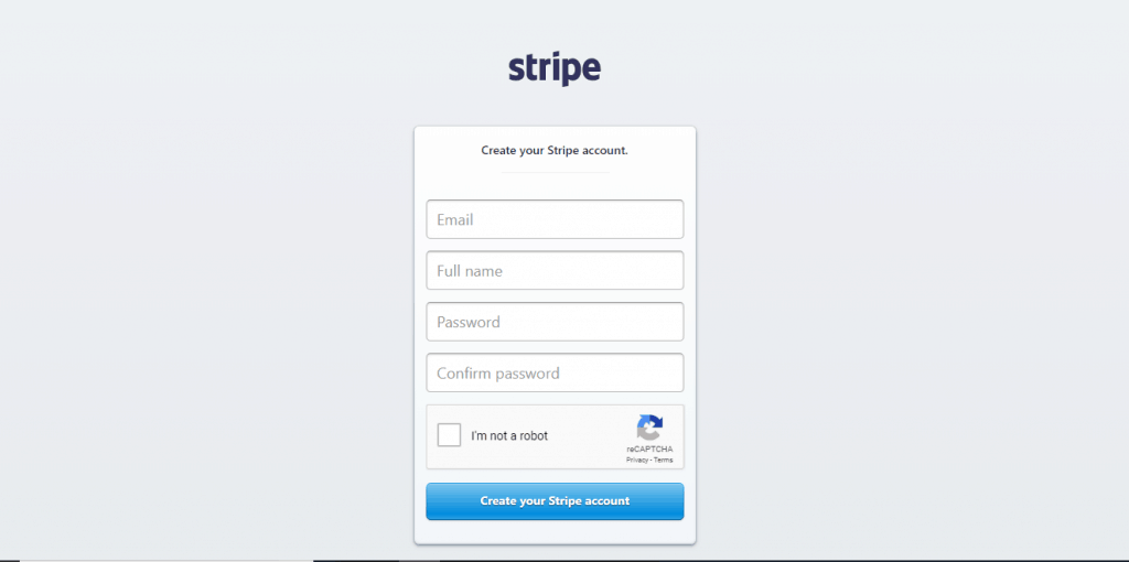 Sign up for the Stripe Connect account using this link. Enter the details of the email, name, and password to get the account registered.